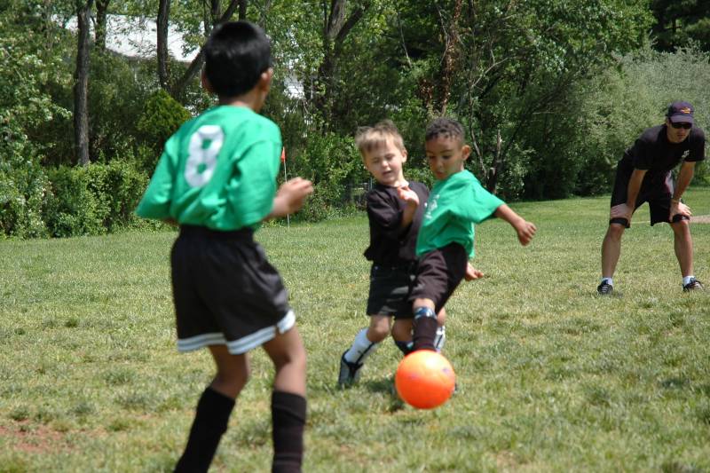 Ryan collides with Max, a classmate in Kindergarten and player on the opposing team.