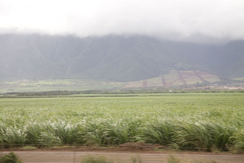 Sugar cane and a cloud covered mountain while Betsi drove at 50mph.
