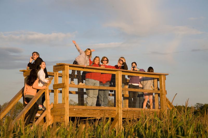 A bridge in the middle near sunset.