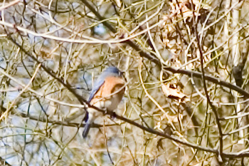 Bird in a tree while walking Shadow through the neighborhood. I
