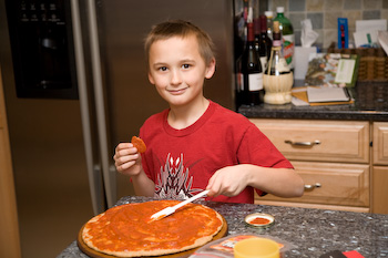 Ryan helps make a pizza, but finds eating the pepperoni