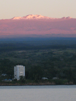 Betsi saw the snow covered mountaintop of Mauna Kea during her morning