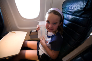 is excited and everyone did well on the 5 hour flight from Washington Dulles