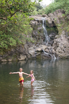 The entrance to the four falls of Na'ili'ili-Haele is 1 and 6/10 miles