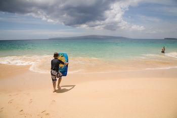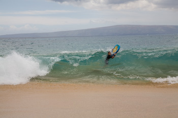 Ryan battles the surf on Big Beach. During our snorkel cruise,