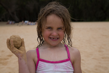 The sand and water were sticky enough to make a sand ball. Jeff