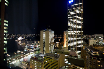 Our hotel room on the 28th floor (left) and a view of the Opera House