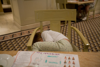 to the 24 hour cafe in the lobby while everyone else slept. He