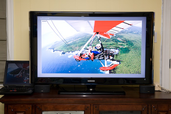 to the left of the TV? The TV and laptop both have a VGA monitor