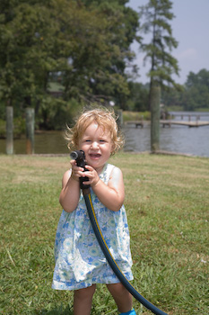 to eat some mud, Quincy needed an outdoor shower and new clothes. I