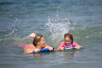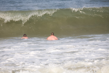 Ryan and Ainsley wait for a good wave for boogie boarding