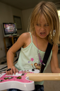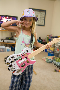 life around 9:00am, Remy practiced putting in pony tails. Betsi's
