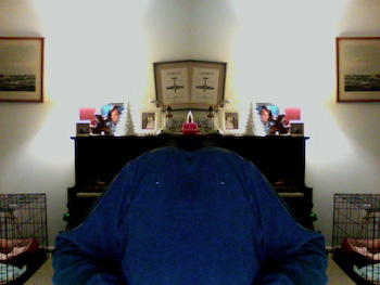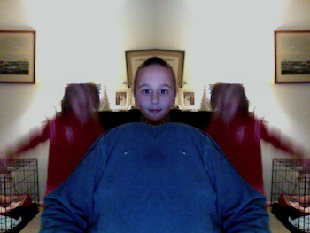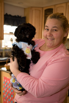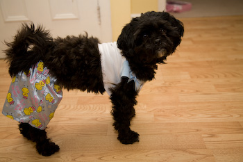 Poor Shadow. Betsi found her walking around the house. We wonder which 7 year old daughter of ours dressed her up in a Build-A-Bear outfit.