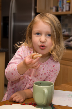Betsi helps an excited Ainsley to fall asleep before
