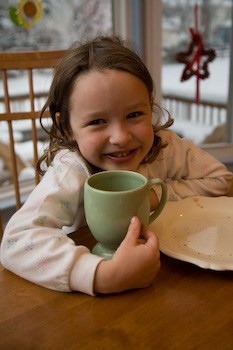 Remy and Quincy enjoy the hot cocoa after playing in