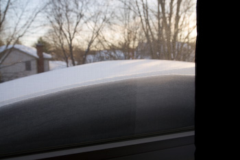 Snow drifts from the roof below and covers part of our bedroom window. See more photos.