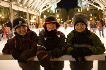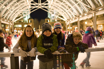 The kids' school sponsored ice skating night at Reston Town Center. |