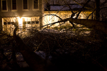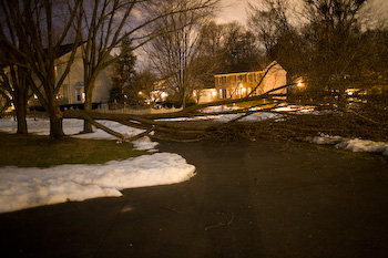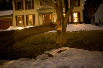Ryan saw the high winds split our neighbor's Bradford Pear tree in half