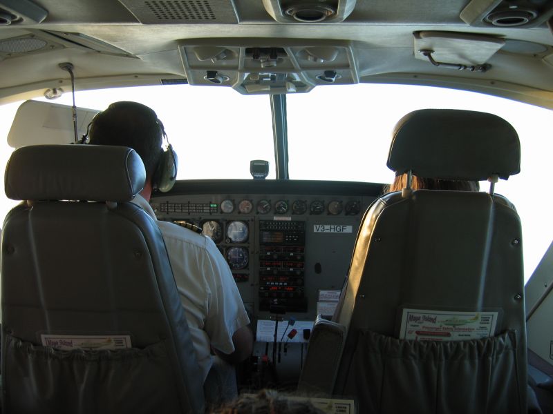 Cockpit of the Cessna Caravan. One of the passengers always gets to ride in the co-pilot seat.