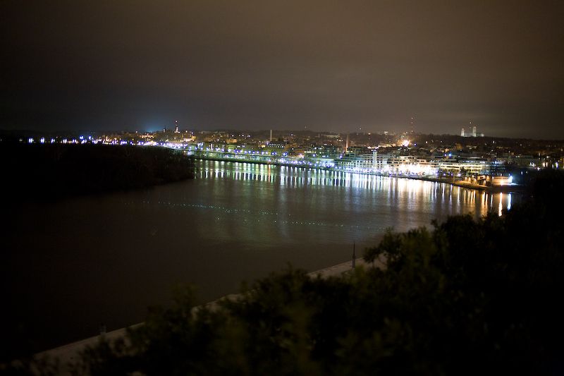 Looking north at Georgetown on the Potomac River. The National Catherdral is on the horizon on the right. The dots on the river is a reflection from my lens filter.