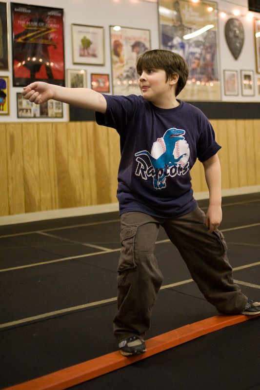 Andrew shows his advance-lunge while maintaining his balance on the orange beam.