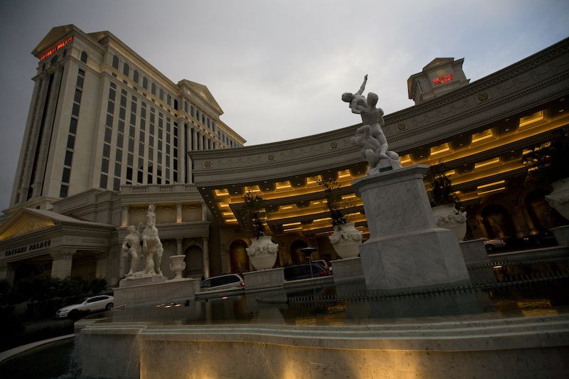 Caesar's Palace near sunset. The sky is too bright and gray.