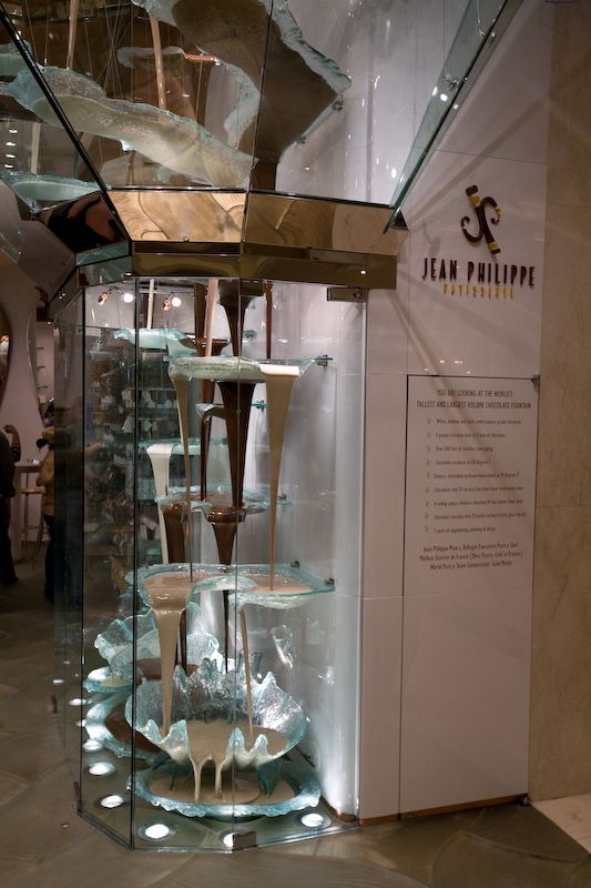 Chocolate is heated and poured from the ceiling.