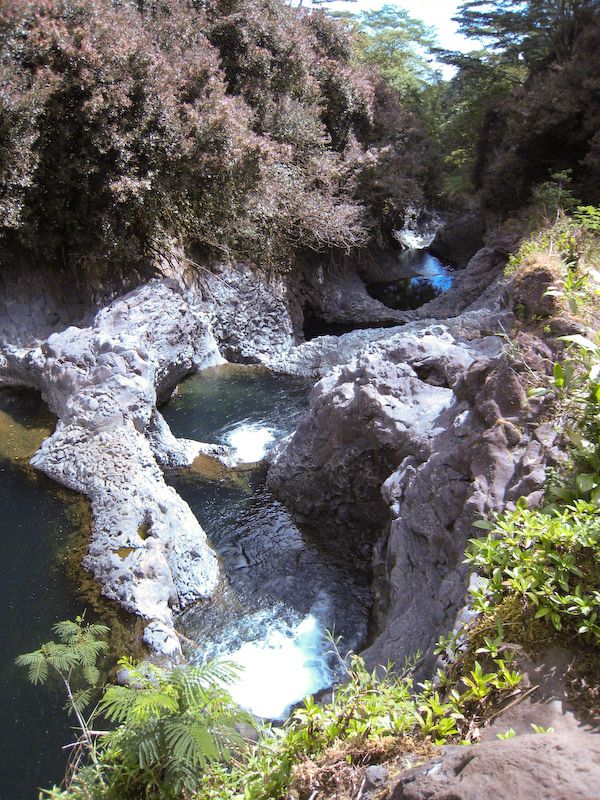 Betsi and the kids are swimming at the Boiling Pots again while Jeff is viewing the lava.