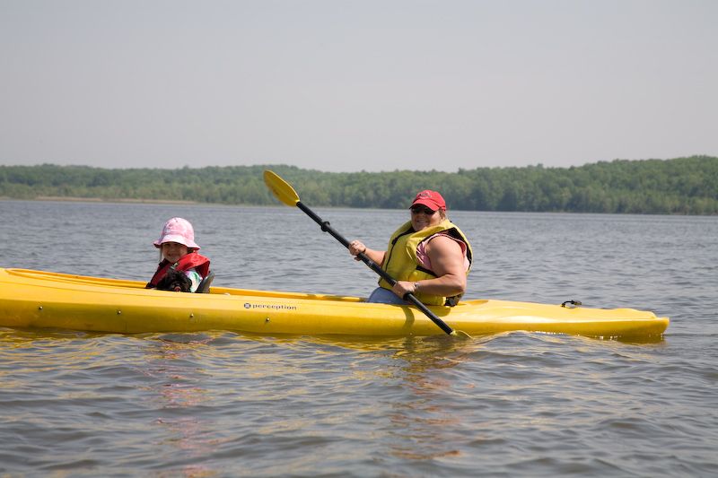 Betsi powers ahead while Ainsley and Shadow enjoy the ride. The marina was less than a mile hike from the campsite.