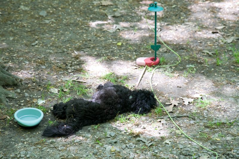 Shadow is worn out. So were we. Betsi and I took a short nap in the campfire chairs after lunch. The tent was already packed in anticipation for an evening thunderstorm.