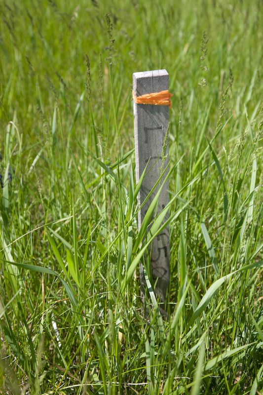 Wood stakes mark where the metal stakes should go.