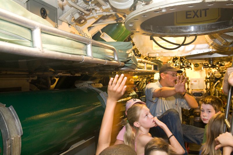This room had six bunks. The men slept at their stations. When the sub went to battle stations, the doors between the compartments were closed. This room held 12 men and 8 torpedoes. Cramped is an understatement.