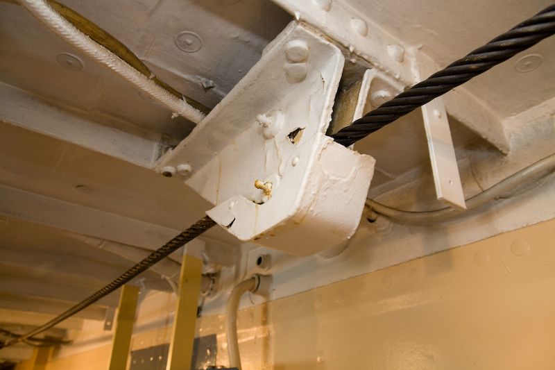 Steering cables running through the ship.