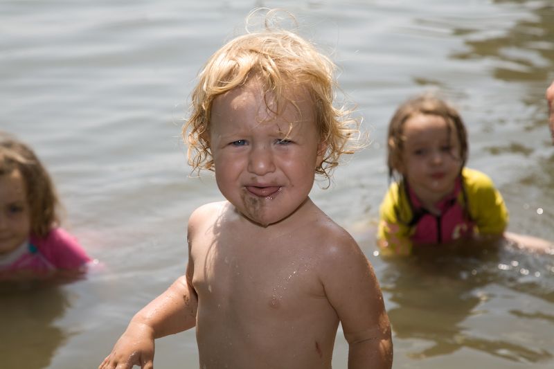 Quincy tries some mud.