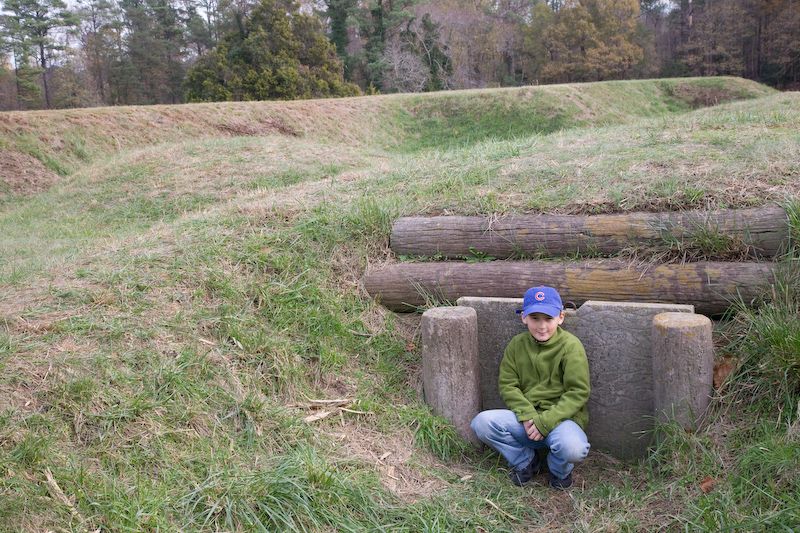 The earthen mounds protected the troops from incoming canon fire as the French and American army occupy the outer defenses.