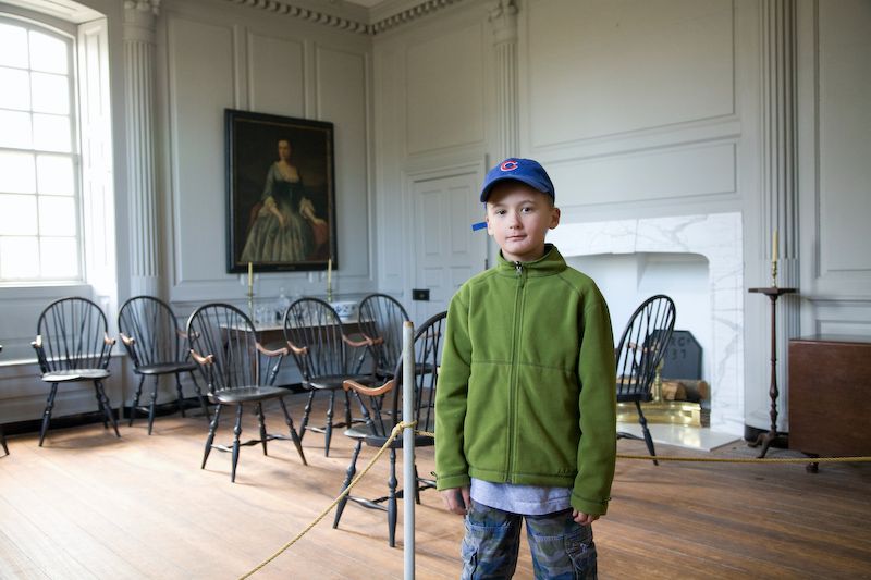 In the dining room without a dining room table.