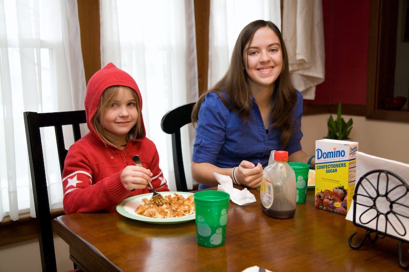 Ainsley and Erin pose before eating their Belgium waffles.