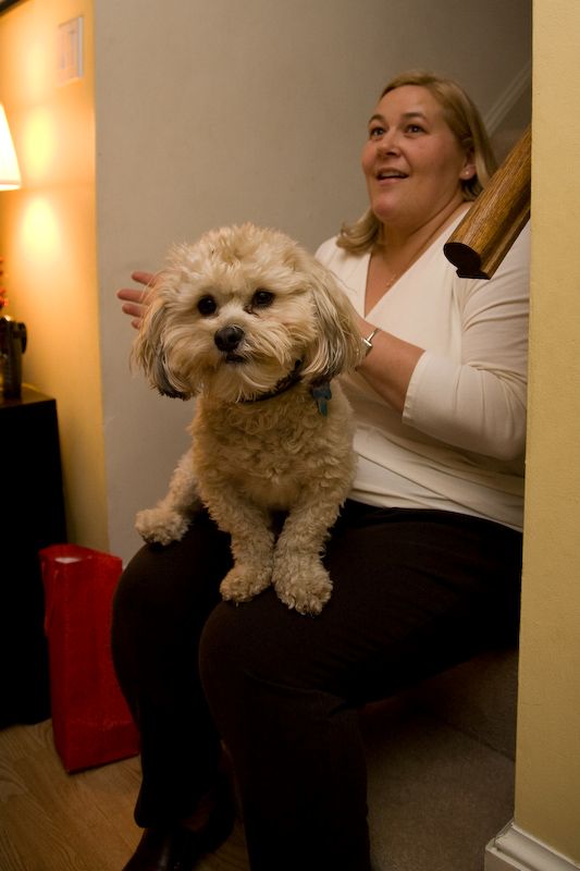 Baci is enjoying the attention. We are dog sitting for the week. Shadow is asleep upstairs on the coats.
