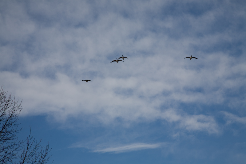 Geese in search of an unfrozen pond. They landed, but flew away minutes later.