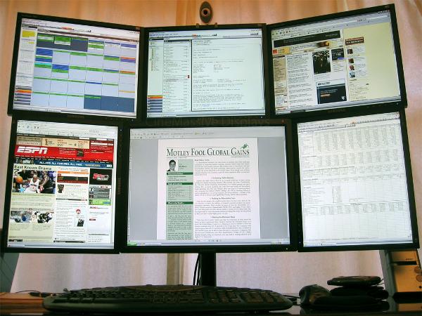 monitors. I've seen a computer with two 24 inch widescreen LCDs