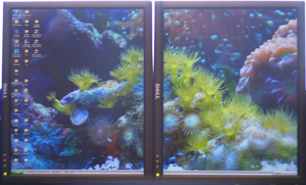 Dual Head DisplayAlmost all video cards allow two monitors to connect to a single computer to make one wide screen. I LOVE this feature. It saves me time by having two applications open full screen at once. I can have Quicken open in one screen and online banking open in the other. I can have an application open in one screen and the help file open on the other screen. ![]() In the above example, NotePad is half on one monitor and half on the other monitor to show Windows treats it as one wide screen. It's fun to see people's reactions when I drag a window from one monitor to the next. ![]() This is a nice setup for non-gaming activities: dual LCD flat panels in portrait mode. Normally, the same wallpaper appears on both monitors, but in this example, the video card driver (software) allows the wallpaper to cover both screens. Photo courtesy of FiringSquad.com. Two to Six Panel LCD DisplayCineMassive uses custom software and a custom LCD monitor stand to make two, three, four, five or six panel LCD arrays in a variety of different layouts and different sized screens. Unfortunately, they don't sell the software or LCD monitor stand separately. They cost about double of what the LCD monitors cost. If you're interested in this setup, please verify the video card requirements. Photo courtesy of Gizmodo. ![]() Top row: three 17 inch monitors in landscape. Bottom center: 20 inch 1600×1200. Bottom left and right: 17 inch in portrait mode. |